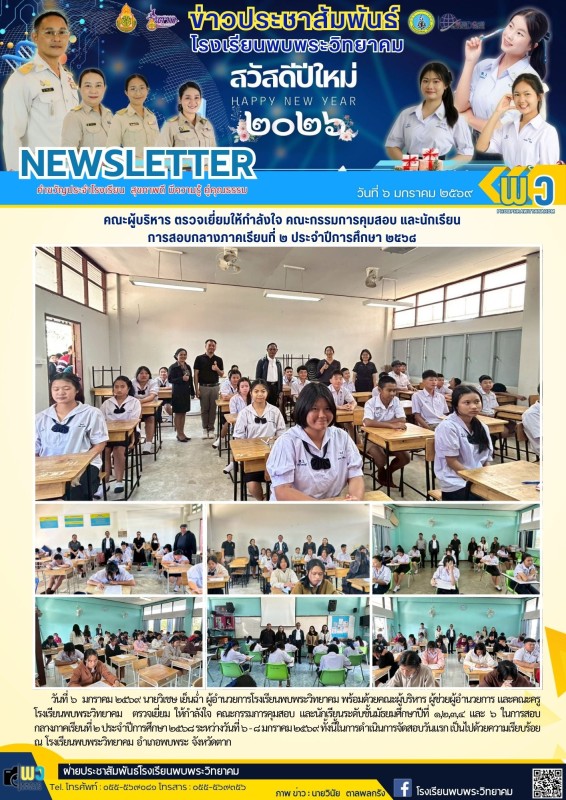 วันที่ ๖ มกราคม ๒๕๖๙ นายวิเชษ เย็นฉ่ำ ผู้อำนวยการโรงเรียนพบพระวิทยาคม พร้อมด้วยคณะผู้บริหาร ผู้ช่วยผู้อำนวยการ และคณะครูโรงเรียนพบพระวิทยาคม ตรวจเยี่ยม ให้กำลังใจ คณะกรรมการคุมสอบ และนักเรียนระดับชั้นมัธยมศึกษาปีที่ ๑,๒,๓,๔ และ ๖ ในการสอบกลางภาคเรียนที่ ๒ ประจำปีการศึกษา ๒๕๖๘ ระหว่างวันที่ ๖ - ๘ มกราคม ๒๕๖๙ ทั้งนี้ในการดำเนินการจัดสอบวันแรก เป็นไปด้วยความเรียบร้อย ณ โรงเรียนพบพระวิทยาคม อำเภอพบพระ จังหวัดตาก |