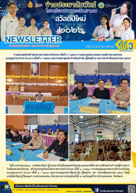 วันที่ ๗ มกราคม ๒๕๖๙ นายวิเชษ เย็นฉ่ำ ผู้อำนวยการโรงเรียนพบพระวิทยาคม มอบหมายให้นางสาวนงลักษณ์ ตาคำ รองผู้อำนวยการโรงเรียนพบพระวิทยาคม เข้าร่วมประชุมหัวหน้าส่วนราชการประจำอำเภอ ครั้งที่ ๑ / ๒๕๖๙ การประชุมคณะกรรมการบริหารงานอำเภอ แบบบูรณานาการ (ก.บ.อ.) ครั้งที่ ๑ / ๒๕๖๙ และการประชุมประจำเดือนกำนัน ผู้ใหญ่บ้าน ฯลฯ ประจำเดือนมกราคม ๒๕๖๙ โดยมีนายธันย์ปวัฒน์ ภูริวัฒนเมธา นายอำเภอพบพระ เป็นประธานการประชุมในครั้งนี้ ณ หอประชุมที่ว่าการอำเภอพบพระ จังหวัดตาก |