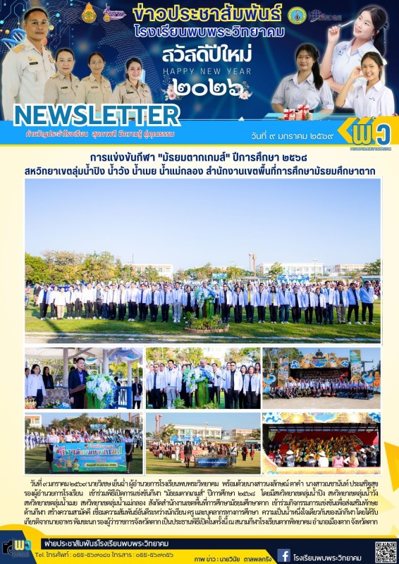 วันที่ ๙ มกราคม ๒๕๖๙ นายวิเชษ เย็นฉ่ำ ผู้อำนวยการโรงเรียนพบพระวิทยาคม พร้อมด้วยนางสาวนงลักษณ์ ตาคำ นางสาวณชานันท์ ประเสริฐสุข รองผู้อำนวยการโรงเรียน เข้าร่วมพิธีเปิดการแข่งขันกีฬา "มัธยมตากเกมส์" ปีการศึกษา ๒๕๖๘ โดยมีสหวิทยาเขตลุ่มน้ำปิง สหวิทยาเขตลุ่มน้ำวัง สหวิทยาเขตลุ่มน้ำเมย สหวิทยาเขตลุ่มน้ำแม่กลอง สังกัดสำนักงานเขตพื้นที่การศึกษามัธยมศึกษาตาก เข้าร่วมกิจกรรมการแข่งขันเพื่อส่งเสริมทักษะด้านกีฬา สร้างความสามัคคี เชื่อมความสัมพันธ์อันดีระหว่างนักเรียน ครู และบุคลากรทางการศึกษา ความเป็นน้ำหนึ่งใจเดียวกันของนักกีฬา โดยได้รับเกียรติจากนายอาทร พิมชะนก รองผู้ว่าราชการจังหวัดตาก เป็นประธานพิธีเปิดในครั้งนี้ ณ สนามกีฬาโรงเรียนตากพิทยาคม อำเภอเมืองตาก จังหวัดตาก |