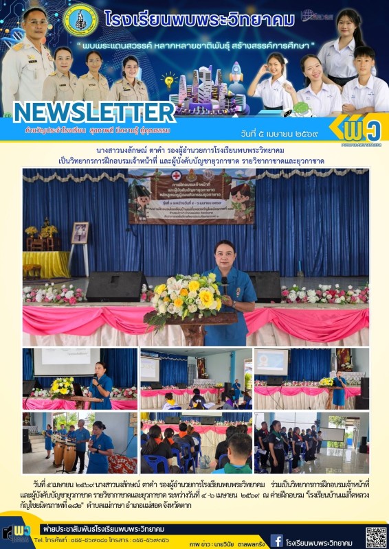วันที่ ๕ เมษายน ๒๕๖๙ นางสาวนงลักษณ์ ตาคำ รองผู้อำนวยการโรงเรียนพบพระวิทยาคม ร่วมเป็นวิทยากรการฝึกอบรมเจ้าหน้าที่ และผู้บังคับบัญชายุวกาชาด รายวิชากาชาดและยุวกาชาด ระหว่างวันที่ ๔ -๖ เมษายน ๒๕๖๙ ณ ค่ายฝึกอบรม "โรงเรียนบ้านแม่กื้ดหลวงกัญไชยมิตรภาพที่ ๑๘๒" ตำบลแม่กาษา อำเภอแม่สอด จังหวัดตาก |