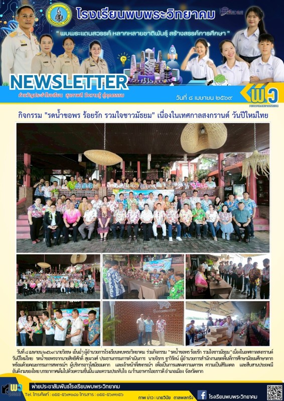 วันที่ ๘ เมษายน ๒๕๖๙ นายวิเชษ เย็นฉ่ำ ผู้อำนวยการโรงเรียนพบพระวิทยาคม ร่วมกิจกรรม "รดน้ำขอพร ร้อยรัก รวมใจชาวมัธยม" เนื่องในเทศกาลสงกรานต์ วันปีใหม่ไทย รดน้ำขอพรจากนายสิทธิศักดิ์ สุยะวงศ์ ประธานกรรมการดำเนินการ นายจิรกร ฐาวิรัตน์ ผู้อำนวยการสำนักงานเขตพื้นที่การศึกษามัธยมศึกษาตากพร้อมด้วยคณะกรรมการสหกรณ์ฯ ผู้บริหารอาวุโสมัธยมตาก และเจ้าหน้าที่สหกรณ์ฯ เพื่อเป็นการแสดงความเคารพ ความเป็นสิริมงคล และสืบสานประเพณี อันดีงามของไทย บรรยากาศเต็มไปด้วยความชื่นมื่น และความประทับใจ ณ ร้านอาหารไอยราวดี อำเภอเมือง จังหวัดตาก |