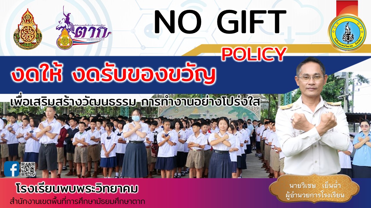 ประกาศเจตนารมณ์และการสร้างวัฒนธรรม ตามนโยบาย No Gift Policy จากการปฏิบัติหน้าที่