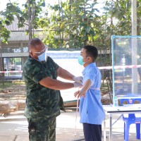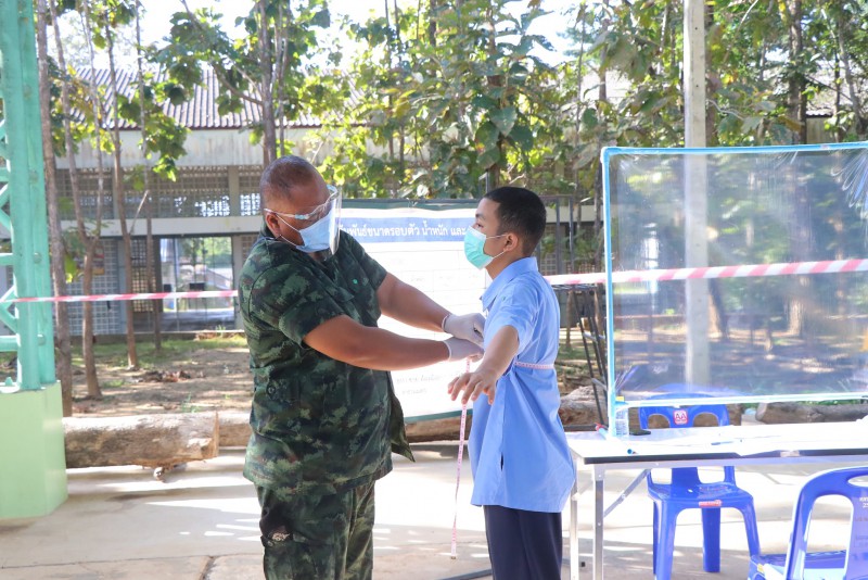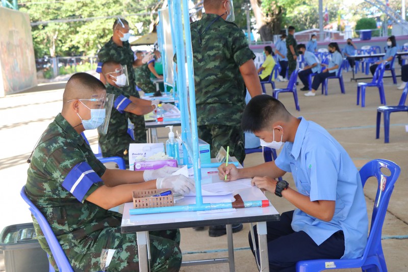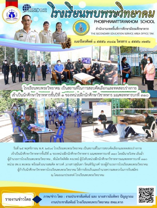 ผู้กำกับนักศึกษาวิชาทหารโรงเรียนพบพระวิทยาคม ให้การต้อนรับและอำนวยความสะดวกในการรับสมัคร ณ โดมอเนกประสงค์ โรงเรียนพบพระวิทยาคม
