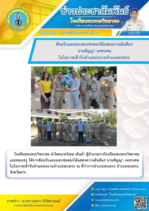 28 พ.ย. 65 แสดงความยินดีแก่นายอำเภอพบพระ
