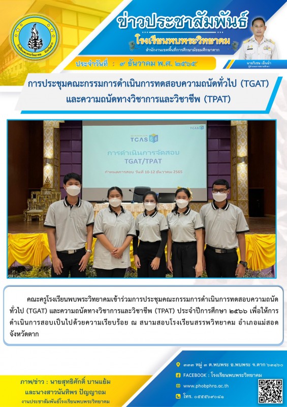9 ธ.ค. 65 ประชุมคณะกรรมการสอบ TGAT/TPAT