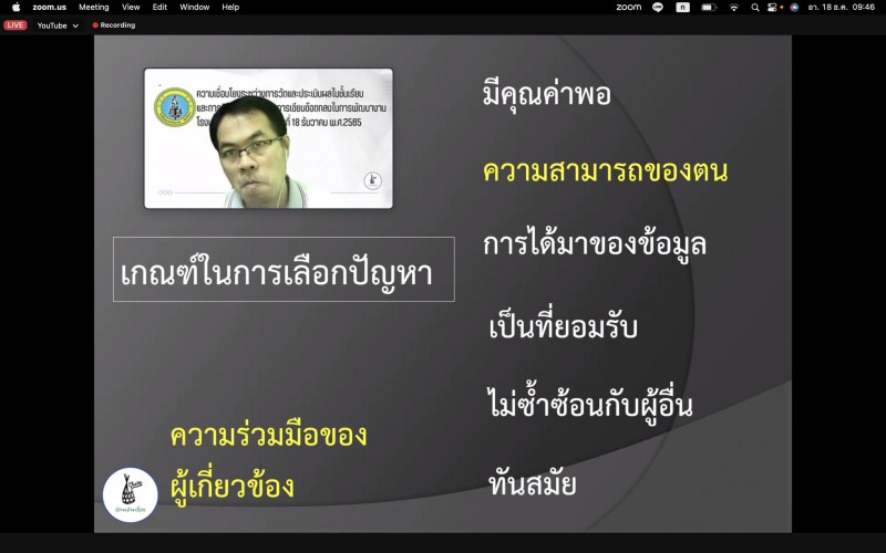 18 ธ.ค. 65 อบรมเชิงปฏิบัติการ “ความเชื่อมโยงระหว่างการวิจัยในชั้นเรียน การวัดและประเมินผลในชั้นเรียน กับข้อตกลงในการพัฒนางาน (PA)”