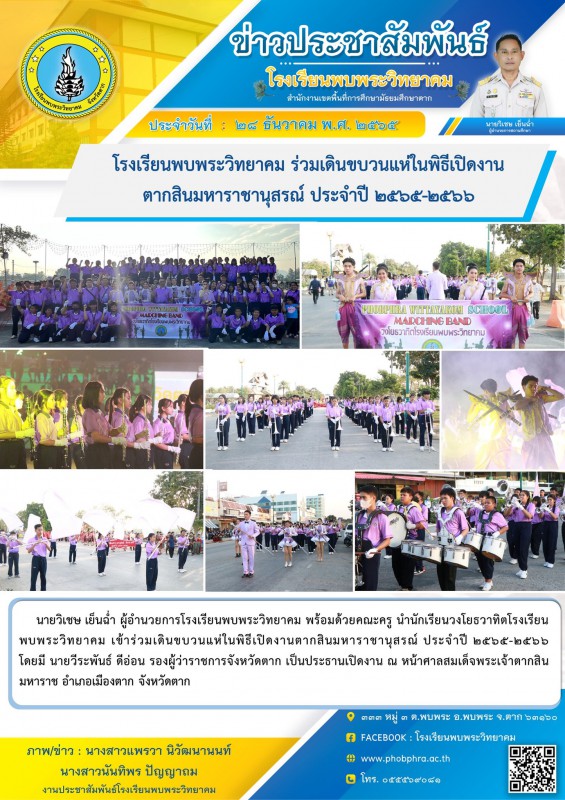 28 ธ.ค. 65 วงโยธวาทิตโรงเรียนพบพระวิทยาคม ร่วมเดินขบวนแห่ในพิธีเปิดงานตากสินมหาราชานุสรณ์ประจำปี 2565 - 2566