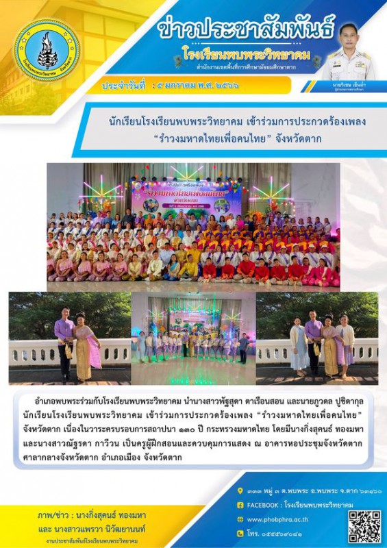 5 ม.ค. 65 นักเรียนโรงเรียนพบพระวิทยาคม เข้าร่วมการประกวดร้องเพลง “รำวงมหาดไทยเพื่อคนไทย”