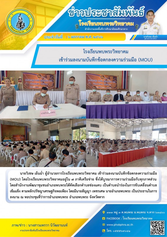 6 ม.ค. 65 โรงเรียนพบพระวิทยาคม เข้าร่วมลงนามบันทึกข้อตกลงความร่วมมือ (MOU)
