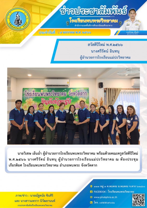 7 ม.ค. 65 สวัสดีปีใหม่ พ.ศ.๒๕๖๖ นางศรีรัตน์ อินทนุ ผู้อำนวยการโรงเรียนแม่ปะวิทยาคม