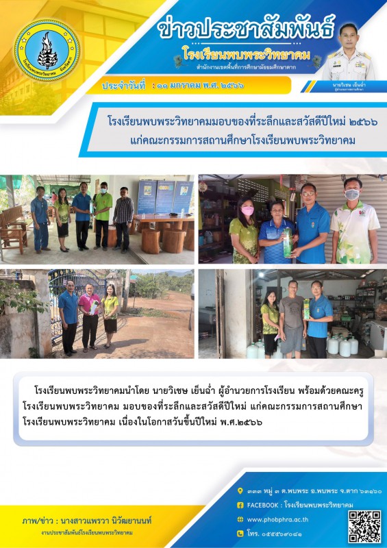 11 ม.ค. 66 มอบของที่ระลึกและสวัสดีปีใหม่ ๒๕๖๖ แก่คณะกรรมการสถานศึกษาโรงเรียนพบพระวิทยาคม