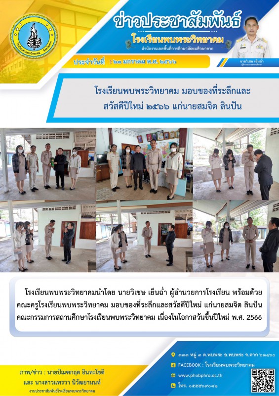 23 ม.ค. 66 โรงเรียนพบพระวิทยาคม มอบของที่ระลึกและ สวัสดีปีใหม่ ๒๕๖๖ แก่นายสมจิต ลินปัน