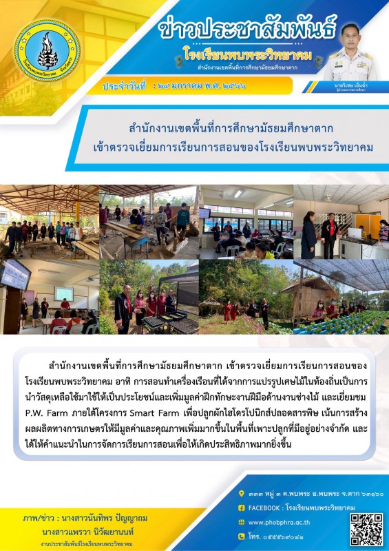 24 ม.ค. 66 สำนักงานเขตพื้นที่การศึกษามัธยมศึกษาตาก เข้าตรวจเยี่ยมการเรียนการสอนของโรงเรียนพบพระวิทยาคม