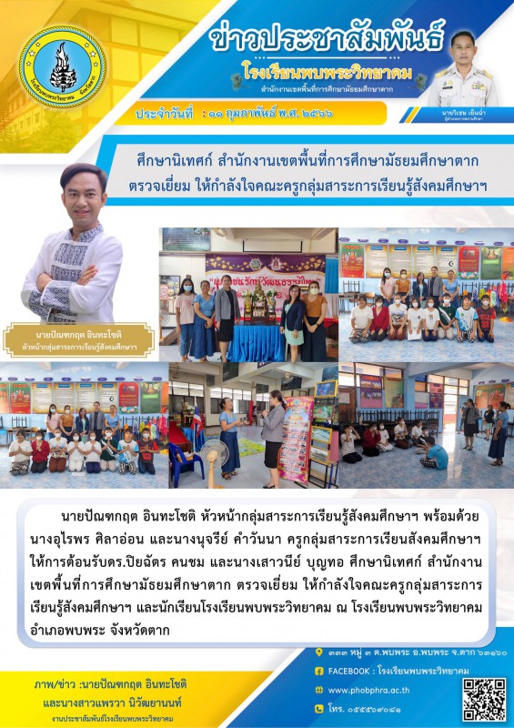 11 ก.พ. 66 ศึกษานิเทศก์ สพม.ตากตรวจเยี่ยมให้กำลังใจกลุ่มสาระสังคมศึกษาฯ