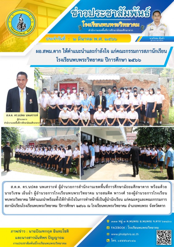 2 มี.ค. 66 ผอ.สพม.ตาก ให้กำลังใจ แก่คณะกรรมการสภานักเรียน