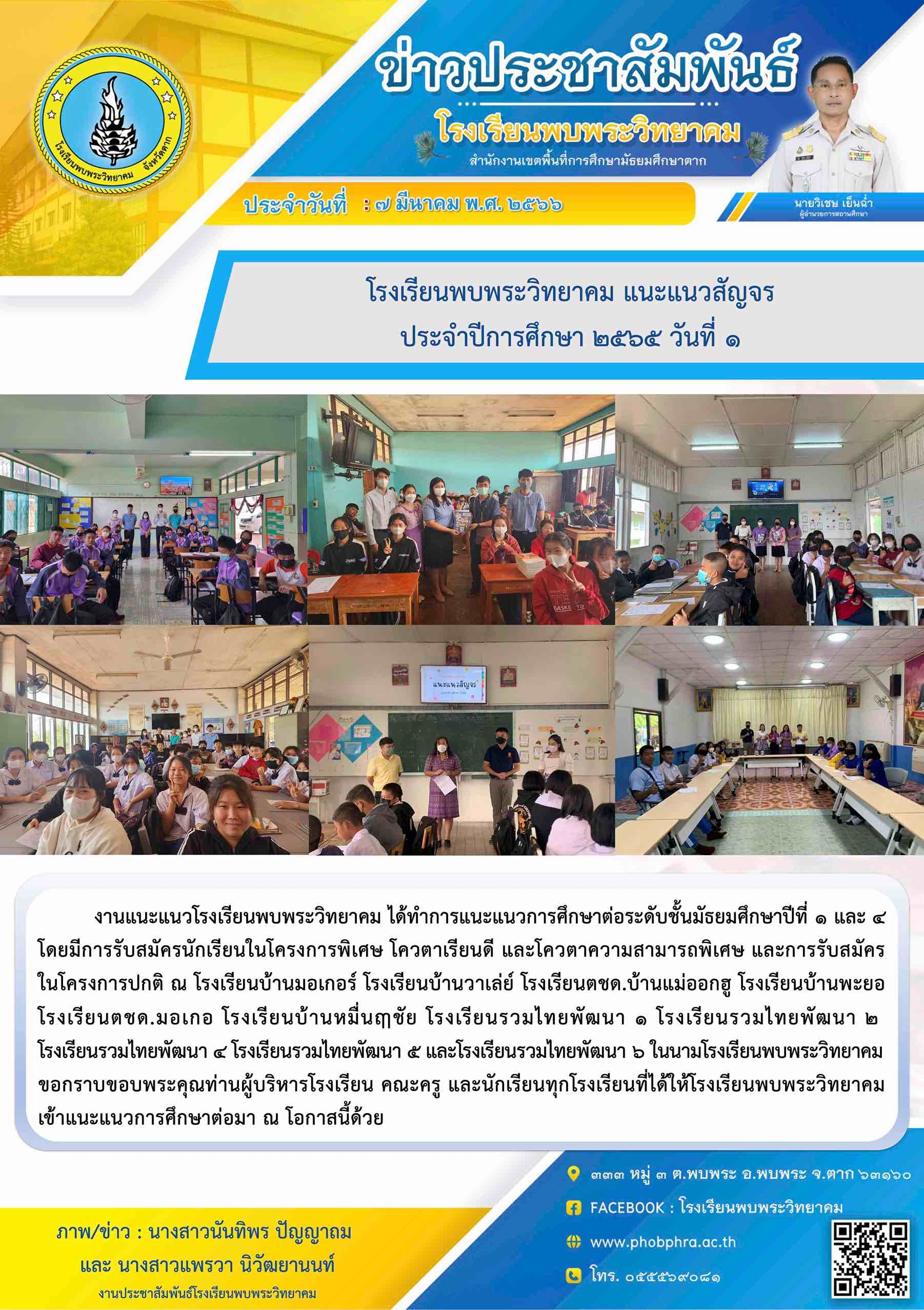 7 มี.ค. 66 แนะแนวสัญจร ประจำปีการศึกษา 65 วันที่ ๑