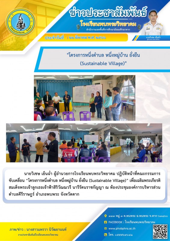 นายวิเชษ เย็นฉ่ำ ผู้อำนวยการโรงเรียนพบพระวิทยาคม ปฏิบัติหน้าที่คณะกรรมการขับเคลื่อน “โครงการหนึ่งตำบล หนึ่งหมู่บ้าน ยั่งยืน (Sustainable Village)” เพื่อเฉลิมพระเกียรติสมเด็จพระเจ้าลูกเธอเจ้าฟ้าสิริวัณณวรี นารีรัตนราชกัญญา ณ ห้องประชุมองค์การบริหารส่วนตำบลคีรีราษฎร์ อำเภอพบพระ จังหวัดตาก |