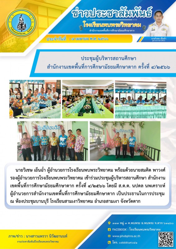 7 เม.ย. 66 ประชุมผู้บริหารสถานศึกษา สพม.ตาก ๔/๒๕๖๖