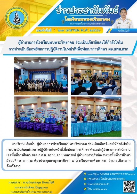 27 เม.ย. 66 ร่วมเป็นเกียรติและให้กำลังใจในการประเมิน ผอ.สพม.ตาก