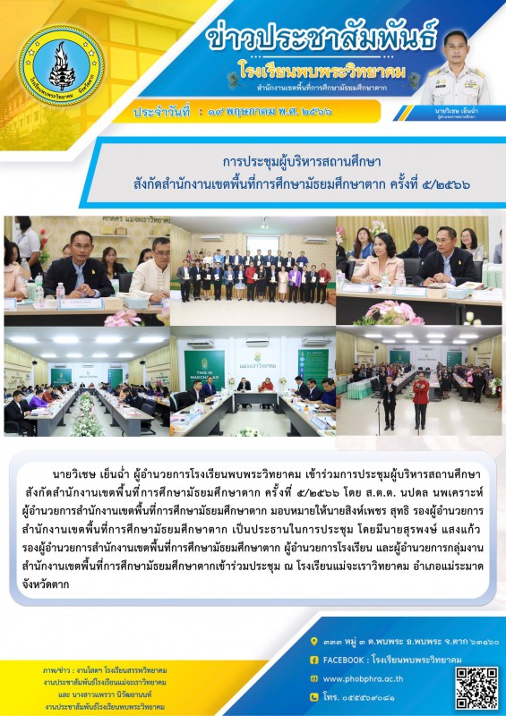19 พ.ค. 66 การประชุมผู้บริหารสถานศึกษา สพม.ตาก 5/2566