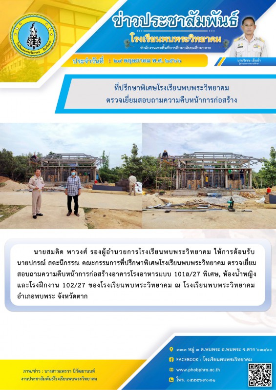 29 พ.ค. 66 ที่ปรึกษาพิเศษโรงเรียนพบพระวิทยาคม ตรวจเยี่ยมสอบถามความคืบหน้าการก่อสร้าง