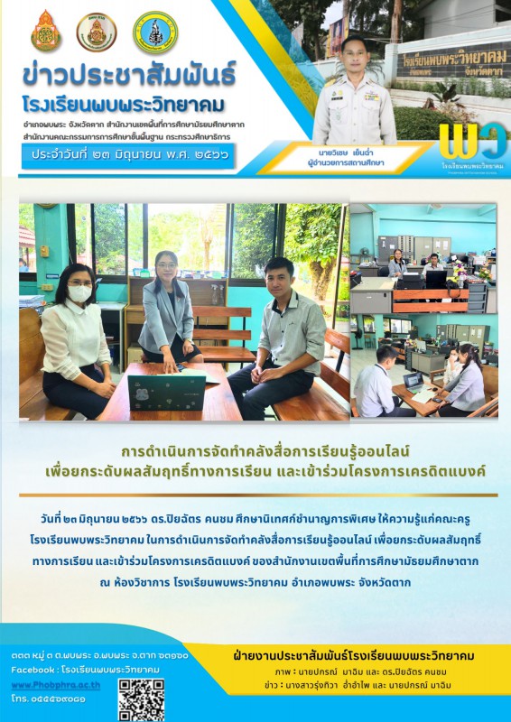 23 มิ.ย. 66 การดําเนินการจัดทําคลังสื่อการเรียนรู้ออนไลน์ เพื่อยกระดับผลสัมฤทธิ์ทางการเรียน และเข้าร่วมโครงการเครดิตแบงค์