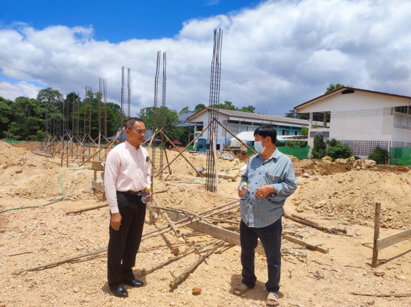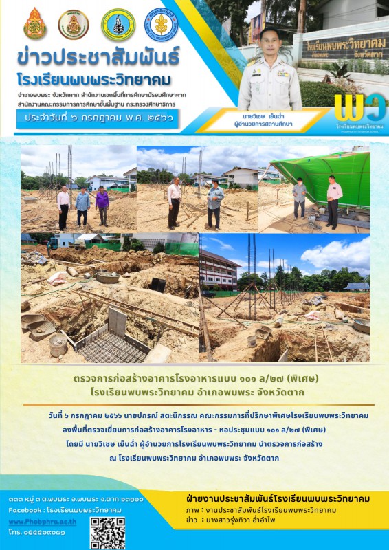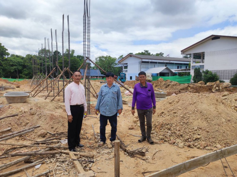 วันที่ ๖ กรกฎาคม ๒๕๖๖ นายปกรณ์ สตะนีกรรณ คณะกรรมการที่ปรึกษาพิเศษโรงเรียนพบพระวิทยาคม เข้าติดตามความคืบหน้าการก่อสร้างอาคารโรงอาหาร แบบ 101ล/27 (พิเศษ) |