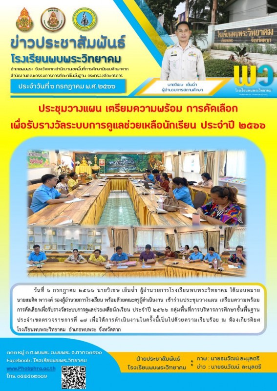6 ก.ค. 66 ประชุมวางการคัดเลือกเพื่อรับรางวัลระบบดูแลช่วยเหลือ นร.