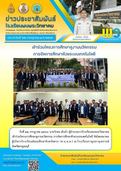 วันที่ 22 กรกฎาคม 2566 นายวิเชษ เย็นฉ่ำ ผู้อำนวยการโรงเรียนพบพระวิทยาคม เข้าร่วมโครงการศึกษาดูงานนวัตกรรมการจัดการศึกษาด้วยระบบเทคโนโลยี จัดโดย สมาคมผู้บริหารโรงเรียนมัธยมศึกษาจังหวัดตาก |
