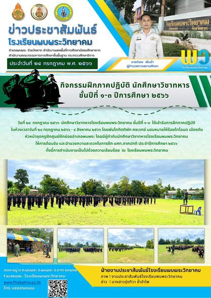 วันที่ 24 กรกฎาคม 2566 นักศึกษาวิชาทหารโรงเรียนพบพระวิทยาคม ชั้นปีที่ ๑-๓ ได้เข้ารับการฝึกภาคปฏิบัติในห้วงเวลาวันที่ 24 กรกฎาคม- 4 สิงหาคม 2566