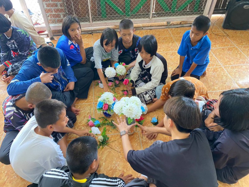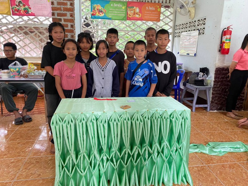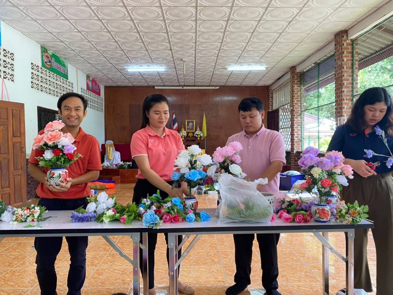 5 ส.ค. 66 อบรมให้ความรู้ด้านทักษะการจับจีบผ้า จัดดอกไม้แห้ง