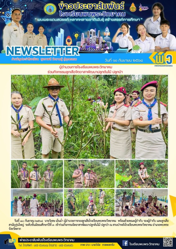 วันที่ ๑๐ กันยายน ๒๕๖๘ นายวิเชษ เย็นฉ่ำ ผู้อำนวยการกองลูกเสือโรงเรียนพบพระวิทยาคม พร้อมด้วยคณะผู้กำกับ รองผู้กำกับ และลูกเสือสามัญรุ่นใหญ่ ระดับชั้นมัธยมศึกษาปีที่ ๓ เข้าร่วมกิจกรรมจิตอาสาพัฒนาปลูกต้นไม้ ปลูกป่า ณ สวนป่าหลังโรงเรียนพบพระวิทยาคม อำเภอพบพระ จังหวัดตาก |