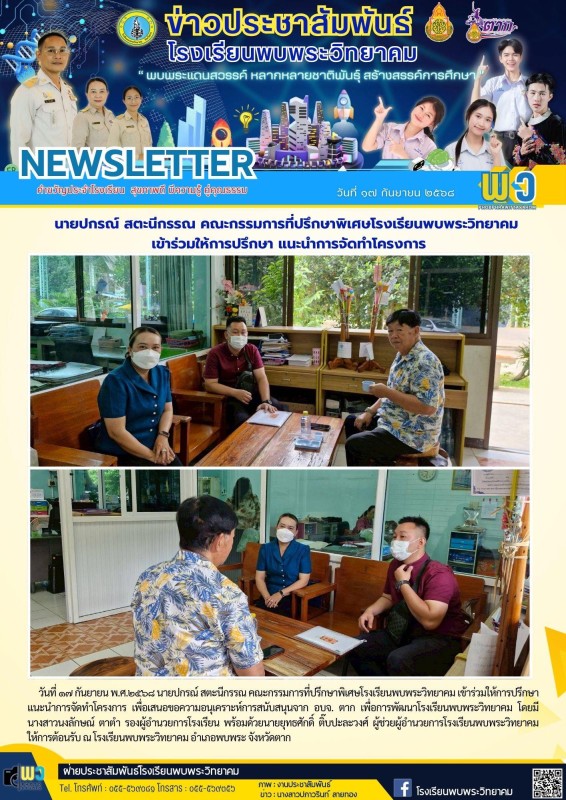 วันที่ ๑๗ กันยายน พ.ศ.๒๕๖๘ นายปกรณ์ สตะนีกรรณ คณะกรรมการที่ปรึกษาพิเศษโรงเรียนพบพระวิทยาคม เข้าร่วมให้การปรึกษา แนะนำการจัดทำโครงการ เพื่อเสนอขอความอนุเคราะห์การสนับสนุนจาก อบจ. ตาก เพื่อการพัฒนาโรงเรียนพบพระวิทยาคม โดยมี นางสาวนงลักษณ์ ตาตำ รองผู้อำนวยการโรงเรียน พร้อมด้วยนายยุทธศักดิ์ ติ๊บปะละวงศ์ ผู้ช่วยผู้อำนวยการโรงเรียนพบพระวิทยาคม ให้การต้อนรับ ณ โรงเรียนพบพระวิทยาคม อำเภอพบพระ จังหวัดตาก |