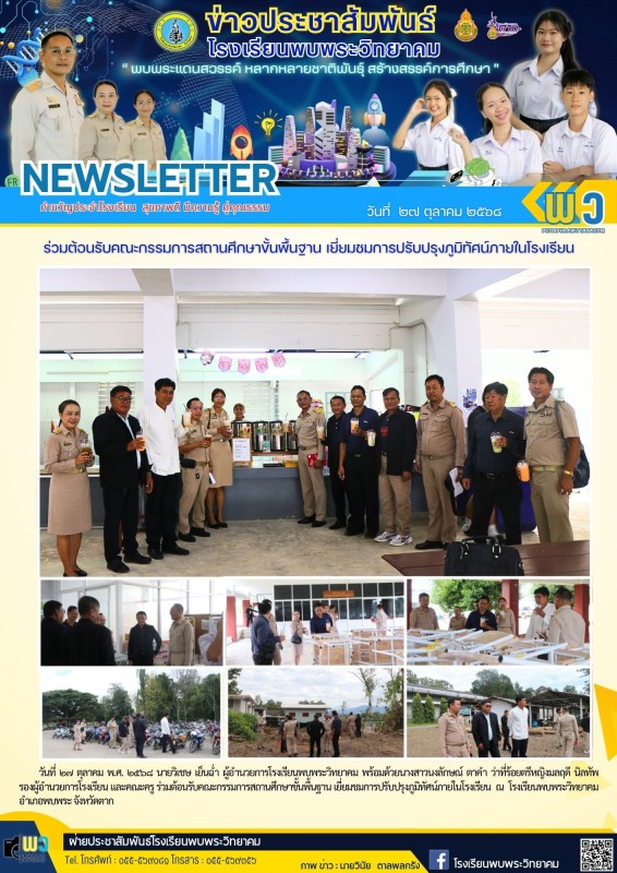 วันที่ ๒๗ ตุลาคม พ.ศ. ๒๕๖๘ นายวิเชษ เย็นฉ่ำ ผู้อำนวยการโรงเรียนพบพระวิทยาคม พร้อมด้วยนางสาวนงลักษณ์ ตาคำ ว่าที่ร้อยตรีหญิงมลฤดี นิลทัพ รองผู้อำนวยการโรงเรียน และคณะครู ร่วมต้อนรับคณะกรรมการสถานศึกษาขั้นพื้นฐาน เยี่ยมชมการปรับปรุงภูมิทัศน์ภายในโรงเรียน ณ โรงเรียนพบพระวิทยาคม อำเภอพบพระ จังหวัดตาก |