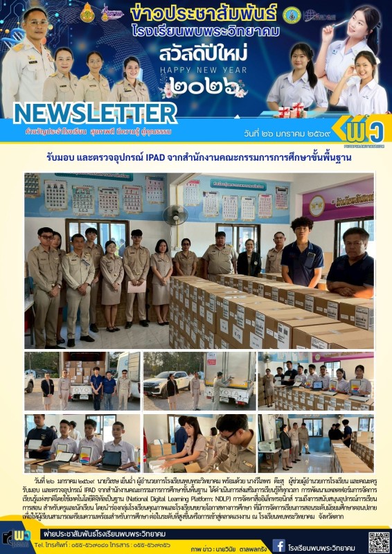 วันที่ ๒๖ มกราคม ๒๕๖๙ นายวิเชษ เย็นฉ่ำ ผู้อำนวยการโรงเรียนพบพระวิทยาคม พร้อมด้วย นางวิไลพร ต๊ะสุ ผู้ช่วยผู้อำนวยการโรงเรียน และคณะครู รับมอบ และตรวจอุปกรณ์ IPAD จากสำนักงานคณะกรรมการการศึกษาขั้นพื้นฐาน ได้ดำเนินการส่งเสริมการเรียนรู้ที่ทุกเวลา การพัฒนาแพลตฟอร์มการจัดการเรียนรู้แห่งชาติโดยใช้เทคโนโลยีดิจิทัลเป็นฐาน (National Digital Learning Platform: NDLP) การจัดหาสื่ออิเล็กทรอนิกส์ รวมถึงการสนับสนุนอุปกรณ์การเรียน การสอน สำหรับครูและนักเรียน โดยนำร่องกลุ่มโรงเรียนคุณภาพและโรงเรียนขยายโอกาสทางการศึกษา ที่มีการจัดการเรียนการสอนระดับมัธยมศึกษาตอนปลาย เพื่อให้ผู้เรียนสามารถเตรียมความพร้อมสำหรับการศึกษา ต่อในระดับที่สูงขึ้นหรือการเข้าสู่ตลาดแรงงาน ณ โรงเรียนพบพระวิทยาคม จังหวัดตาก |